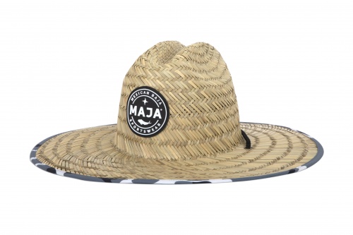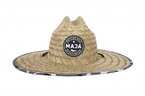 Un sombrero muy original listo para acompañarte a disfrutar de atardeceres, 100% de fibra con logotipo de MAJA al frente y orilla en diseño de «Aquadrip» inspirado en el efecto de la luz del sol reflejada en el mar de Cortés.